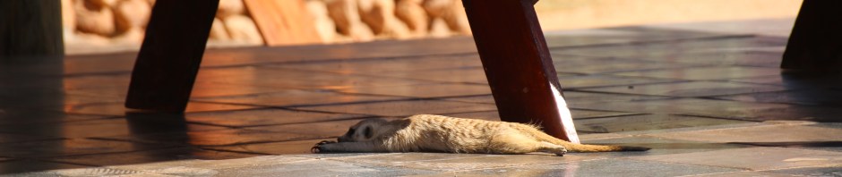 Hallo Ihr Lieben, leider fällt das Bloggen in diesen Tagen etwas schwer, da wir im Camper unterwegs sind und das Internet knapp ist 😦 Einen kleinen Gruß von einem haarigen Weggenossen senden wir dennoch sehr gerne aus dem Restaurant, wo wir grade zu Mittag essen (aus Kamanjab).
