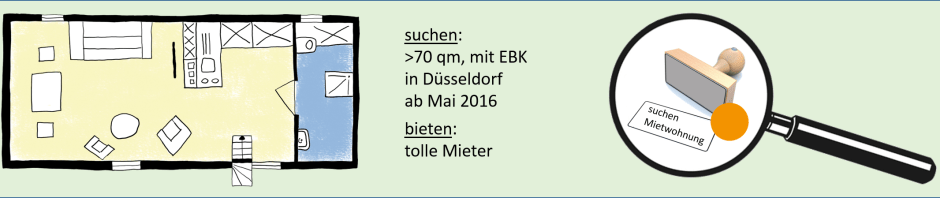 Falls Ihr eine Idee habt oder von einer Wohnung in Düsseldorf wisst, die ganz tolle Mieter sucht, würden wir uns sehr ( 🙂 🙂 🙂 ) über einen Hinweis freuen.